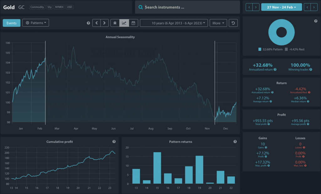 - Add up to 500 instruments of your choice and screen them for the upcoming seasonal patterns